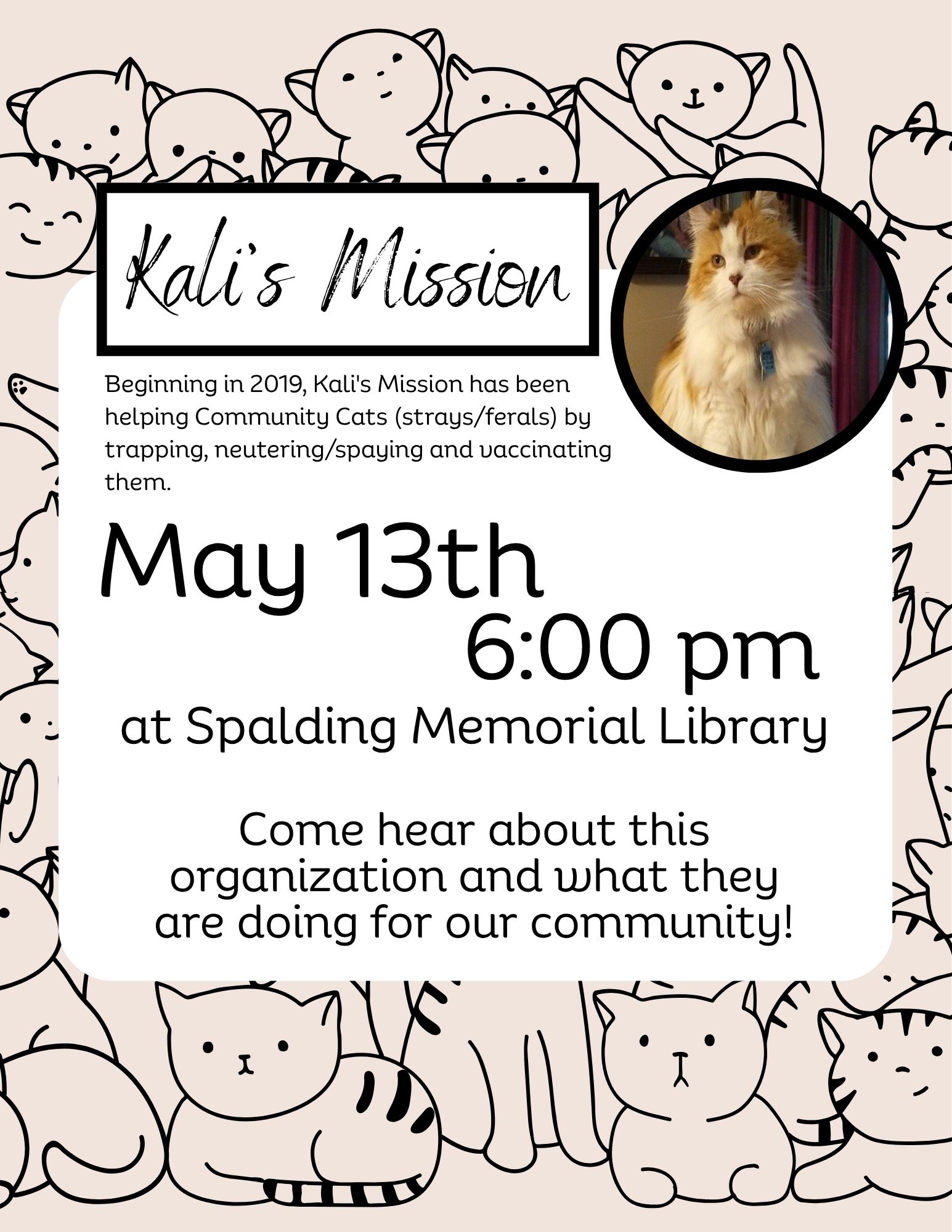 Kali’s Mission is a nonprofit organization that helps stray and feral cats by trapping, neutering/spaying, vaccinating, and returning them. Come see what this organization is doing in our community.